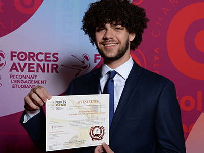 Il s’agit d’un programme de Forces AVENIR qui a vu le jour en 2017. Il vise à reconnaître l’engagement et la persévérance comme des vecteurs de performance pour notre société ainsi qu’à valoriser et à favoriser la poursuite des études supérieures. Ce programme permet également de créer un fil conducteur dans le système d’éducation entre les niveaux secondaire et universitaire. Pour ce faire, le programme octroie des bourses d’études universitaires à des élèves du secondaire ayant été reconnus par Forces AVENIR pour des comportements d’engagement et de persévérance.